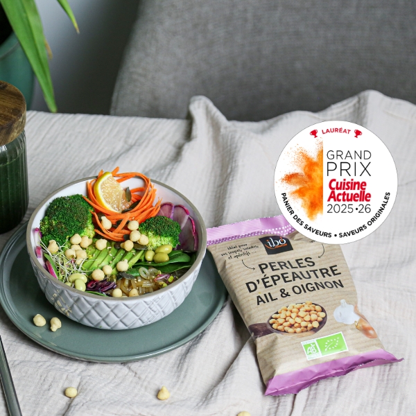 Parmi les produits distingués, nos Perles d’épeautre ail & oignon ibo! se sont particulièrement illustrées lors du Grand Prix Cuisine Actuelle 2025, dans la catégorie Saveurs Originales.